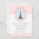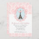 Ce design s'inspire de Paris, ville de la mode et de la lumière ! Il présente la fameuse tour de l'aiffel en style d'illustration vintage, où un ruban rose clair est gracieusement posé sur le dessus pour ajouter une touche de pouce. Le arrière - plan est composé de pois bleu clair et blanc et de damas rose et blanc. Enfin, il est encadré par un cadre de style vintage en tourbillons roses. Modifiez le texte du modèle en saisissant les informations de votre partie.