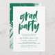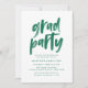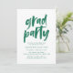 Des invitations à des soirées de remise de diplômes élégantes et modernes, avec une police de pinceau peinte à la main et des touches abstraites vertes. Personnalisez les invitations chics de la fête de remise de diplômes avec vos détails de graduation personnalisés pour un look qui impressionnera les invités!