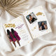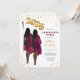 Invitation du parti afro-américain de double diplôme. Les jumelles jumelles double graduation combinent fête de remise des diplômes. Portrait de femmes jumelles aux cheveux longs foncés en robes noires avec robes de graduation bordeaux marron et casquettes de graduation avec ballons d'or pour la classe de 2025. Les deux jumeaux sont au dos de la carte avec leurs photos, noms, écoles et diplômes.