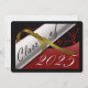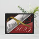 Carte de graduation rouge et or avec un diplôme et l'année de graduation dessus. Le dos est un arrière - plan noir avec des lettres d'or pour les invitations à la fête de remise de diplômes.