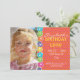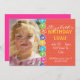 Cette invitation à la fête d'anniversaire du luau hawaïen présente des fleurs d'hibiscus, un endroit pour la photo de votre enfant et des champs de texte personnalisables pour vos informations de fête.