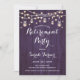Invitation de la partie de retraite - Bois pourpre rustique. Design rustique avec bois violet et lumières à cordes féeriques.