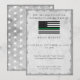 Invitation les invités de votre fête de retraite avec cette mince invitation de drapeau vert pour les militaires, les patrouilles frontalières, les gardes forestiers et les agents de conservation. Ce design présente un arrière - plan gris argenté avec un mince drapeau de police de ligne verte et les détails de votre parti en typographie grise séparés par des étoiles blanches. Le dos de la carte a un motif d'étoiles blanches sur argent. Conçu par un artiste mondialement connu ©Tim Coffey.