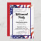 Cette invitation du Parti de la retraite militaire présente un drapeau américain en tant qu'arrière - plan avec un texte personnalisé pour les détails de votre événement.