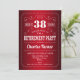 Invitation de la partie de retraite. Design élégant en rouge et blanc. Parfait pour la retraite classe pour femmes ou hommes. Imprimé Zazzle invitations ou télécharger instantanément le modèle numérique. Peut être customisé à n'importe quelle année!