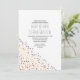 invitation contemporaine propre et simple fiançailles avec des points de confetti en faux confetti bleu marine, rose et or maté. Veuillez noter que ce design n'utilise aucun confetti de parties scintillant en or physique, il sera imprimé comme vous le voyez sur l'écran de votre ordinateur.