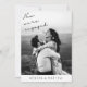 Cette simple invitation de fiançailles minime semble tendance et élégante. Caractéristiques noir et blanc photo du couple, écriture manuscrite et personnalisation. Cette carte de fiançailles à double face est facile à customiser avec la photo de futurs mariés et mariés, les noms, la date et l'heure de la fête de fiançailles, l'adresse, etc.