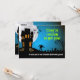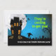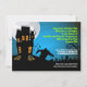 La scène est nocturne. La pleine lune se lève derrière une maison hantée et les chauves-souris s'envolent. Soudain les morts-vivants montent du cimetière et marchent. L'inverse révèle que le zombie se rapproche avec l'information de l'événement qui entoure la créature. Cette invitation est parfaite pour une fête d'Halloween ou la prochaine invasion zombie. Disponible avec les produits correspondants.