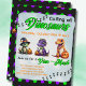 Appelle tous les amis, famille et Tyrannosaurs Rex! Jetez un coup d'oeil à ce design coloré de la fête d'Halloween Dinosaur Dino-Mash. Préparez-vous pour un bon moment torride cet Halloween. Ces adorables dinosaures se précipitent pour un Dino-Mash ! Cette invitation à Halloween dinosaure est votre 1ère étape pour lancer la meilleure fête d'Halloween Dino jamais! Aimez l'impression ? Faites tourner vos empreintes de dino et explorez toute la collection Halloween Dinosaur Dino-Mash Party !