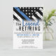 Cette conception comprend un drapeau de la police avec des rayures noires et blanches, ainsi qu'une fine bande bleue. Le texte "La légende prend sa retraite" s'applique avant tout aux détails du parti pour l'officier de l'application de la loi, le shérif, le capitaine ou les chefs du parti de retraite qui prend sa retraite.