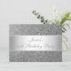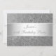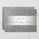 Tous les événements, célébrations, annonces et invitations de fête d'anniversaire. Approprié à tous les anniversaires et événements d'âge. Rsvp est disponible sur demande dans le style semblable. Bel arrière - plan de relief élégant de motif de Paisley de gris argenté en métal avec les équilibres blancs argentés de satin et le texte blanc. Changez le style et la taille du texte avec customisent.