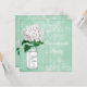 Invitations faites sur commande vertes et blanches en bon état élégantes de partie de Bachelorette avec un pot de maçon blanc et vert mignon de boule en verre et une illustration vintage de fleur d'hortensia assez blanc sur un collage vert en bon état chic minable antique élégant avec de belles décorations fleuries blanches, une libellule, et l'inscription fanée sur un motif élégant de harlequin. Sur l'inverse des invitations est les perles et le tapis blancs imprimés fascinants de dentelle avec le texte pour que vous personnalisiez avec vos détails de partie. Invitations chics, à la mode, à la mode, modernes parfaits pour le ressort, été, chute/automne et événements d'hiver. Tout les texte peut être facilement customisé pour répondre à vos besoins et vous pouvez changer le style de police, la couleur et la taille de la police si vous désirez. J'ai les produits assortis de mariage dans mon magasin. Si vous avez besoin de n'importe quelle aide customisant votre produit svp me contactez par mon magasin et je serai heureux d'aider. Tapis de perle par le ©Hazel Kinvig-Paul www.design-a-dream.co.