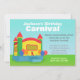 Des enfants seront excités pour recevoir cette invitation lumineuse et gaie de fête d'anniversaire de carnaval qui a une maison/château gonflés de rebond d'amusement avec un bon nombre de ballons colorés accrochant du côté. C'est également parfait pour les écoles primaires qui tiennent un carnaval d'école. Conçu par griffonnage rouillé.