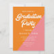 Cette invitation rétrograde orange, rose et blanc bloc couleur est unique et ravira vos invités pour une fête de remise de diplômes amusante !
