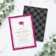 Cette invitation classique moderne à la remise des diplômes a une couleur arrière - plan modifiable; pour changer la couleur de la bordure, mortier sur l'arrière - plan avant et arrière à la couleur de votre choix, cliquez sur le bouton personnaliser et simplement changer la couleur de l'arrière - plan avant et arrière. C'est une excellente façon de faire correspondre votre invitation à la fête aux couleurs de votre école. Personnalisez-le en remplaçant le texte de l'espace réservé. Pour plus d'options comme changer la police, sa taille et l'espacement entre les lettres cliquez sur le bouton "Personnaliser". *Veuillez noter que le filigrane Zazzle qui apparaît dans l'aperçu du zoom n'apparaîtra PAS sur le produit imprimé final. © Bois de rose et agrumes