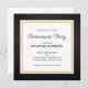 Cette invitation à la retraite présente un thème d'affaires élégant avec un arrière - plan noir et des rayures verticales gris clair. Une boîte blanche avec une bordure en or contient du texte personnalisé pour vous permettre d'ajouter les détails de votre invitation.