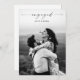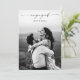 Script moderne Photo Mariage Engagement Party Invitations Faire-part. L'arrière-plan comprend des détails supplémentaires pour les invitations des parties et/ou les informations sur le registre. Cliquez sur le bouton personnaliser/modifier pour customiser cette conception avec vos photos et vos détails.