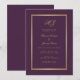 Invitation vos invités de fiançailles mariages dans le style avec cette élégante invitation monogramme personnalisée. Le design moderne présente des initiales en faux or monogramme en faux or script ainsi que tous les détails de votre mariage pour personnaliser bordé d'un cadre en faux or brillant sur un arrière - plan prune violet. Meilleurs voeux pour votre mariage et mariage ! Conçu par Susan Coffey.
