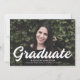 Invitation simple et élégante à la remise des diplômes avec la photo horizontale du diplômé avec "Graduate" dans une écriture blanche en gras. Personnalisez l'invitation de la fête de remise de diplômes en y ajoutant le nom du diplômé, le nom de l'école et l'année de remise de diplômes. L'invitation s'inverse pour afficher les détails de votre fête de graduation avec un arrière - plan de motif d'arc géométrique en noir et blanc.