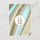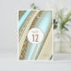 Cet ensemble design, avec son motif abstrait d'ondulations fluides et de veines d'or scintillant, évoque des formations rocheuses captivantes, des dunes de sable coulantes et des vagues océaniques douces. Les couleurs saisissantes de la mer et du sable de cet ensemble viennent compléter l'attrait. La carte de numéro de table de coordination montrée ici a tout ce qui précède avec un agencement qui le distingue de la foule. Ajoutez facilement vos noms, numéros et date de mariage à l'aide du modèle fourni. Recherchez ID903 pour voir d'autres choix de couleurs et coordonner des pièces pour cette collection de mariages unique.
