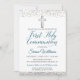 Parties scintillant Argent Cross Script First Holy Communion Invitation