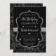 Elégant noir et argent art déco filigree et motifs pois avec cadre vintage argent et diamants