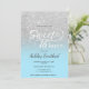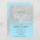 Une douche à parties scintillant moderne et jolie en faux argent ombre avec bloc couleur bleu glace Sweet 16 anniversaire invitation avec typographie élégante avec motif bleu ombre. Parfait pour un Sweet sixteen princesse.