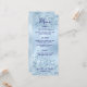 Carte menu mariage avec une élégante parties scintillant bleu bébé et un design en feuille.