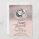 Une jolie invitation au baby shower comprend un bokeh rose en parties scintillant d'or avec un baby shower citrouille fleuri. Ces invitations de douches pour bébés sont facilement customisées pour votre événement en ajoutant simplement vos détails.