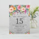 Parties scintillant d'argent Floral Surprise 15e anniversaire Invitation pour fille. Fleur florale aquarelle. Arrière - plan de Parties scintillant d'argent. Rose, Jaune, Orange, Fleur Violet. Anniversaire adulte. 13e 15e 16e 18e 20e 21e 30e 40e 50e 60e 70e 80e 90e 100e, n'importe quel âge. Pour plus de personnalisation, cliquez sur le bouton "Customiser" et utilisez notre outil de conception pour modifier ce modèle.