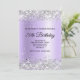 Une invitation moderne pour fêter ses 70e ou 75e anniversaire. Faux parties scintillant argent brillant pâle contre un satin sombre lavande clair violet feuille graphique. La calligraphie moderne et le style de texte, la taille et la couleur peuvent être customisés. Tous les éclats de ce design moderne sont des graphismes numériques.
