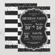 Invitation conjointe d'un adulte à la fête d'anniversaire. Coanniversaire de la fête combinée. Parties scintillant noire et argent. Confetti en argent. Bandes noires et blanches. Homme ou femme, garçon ou fille Anniversaire Invitation. Éclairage à cordes. 13ème 15ème 16ème 18ème 20ème 21ème 30ème 40ème 50ème 60ème 70ème 80ème 90ème 100ème, n'importe quel âge. Pour plus de personnalisation, cliquez sur le bouton "Customiser" et utilisez notre outil de conception pour modifier ce modèle.