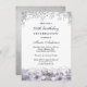Invitation Parties scintillant d'argent violet fleuri 80e ann