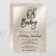Une parties scintillant d'ivoire perle chic et luxueuse à l'ombre du feuillage métallique avec une élégante typographie calligraphique pour une invitation Oh baby typographie baby shower.