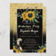 Bouchon de graduation parties scintillant or, verre de champagne et tournesols sur arrière - plan noir.