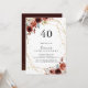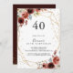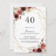 Cette parties scintillant d'or géométrique printemps 40e anniversaire invitation est parfait pour une simple fête d'anniversaire. Le design est composé de belles fleurs peintes à la main rose, rousse, bleue et bordeaux, associées à un feuillage vert, qui ornent un cadre de parties scintillant en or géométrique.