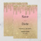 Une élégante parties scintillant dorée et rose ombre gouttes luxe Mariage Enregistrer la Date invitation est parfait pour toute fille classe et sophistiquée. Ce design géométrique de parties scintillant dorée exquis et éblouissant est parfait pour l'événement tendance et élégant girly party. Customisez cette conception avec votre message et des informations personnalisées.