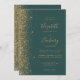 Le bord gauche de cette élégante faire-part de mariage moderne présente un style de parties scintillant en faux or. Le texte personnalisable combine écriture manuscrite couleur or, cuivre et polices italiques sur un arrière - plan vert foncé. L'envers présente une parties scintillant verte et dorée assortie.
