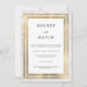 Une parties scintillant en marbre doré blanc et doré cadre géométrique élégant mariage. Ce design minimaliste présente un joli arrière - plan design de bordure en marbre de parties scintillant dorée. Customisez cette conception avec votre message et des informations personnalisées. Tous les dessins sont imprimés.