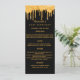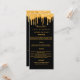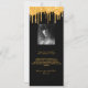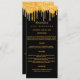 Personnalisez et ajoutez votre nom, votre date, votre événement et le menu. Arrière - plan noir, décoré de faux gouttes de parties scintillant d'or. Retour : ajouter une photo, BIO/faits amusants