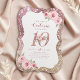 Faux rose or brillant cadre de parties scintillant et rose floral avec grand 10 au centre, élégant et élégant, de grandes invitations de premier anniversaire pour fille.