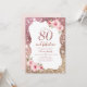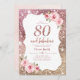 Faux rose or brillant parties scintillant arrière - plan et rose vif floral avec "80 et fabuleux" script au centre, élégante et élégante, grandes invitations de fête de 80e anniversaire.