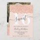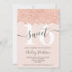 La parties scintillant d'or Rose goutte le rose pastel chic Sweet 16 avec une parties scintillant d'or rose chic et pétillante perce la bordure sur l'encre rose pastel modifiable. Ajoutez votre douce photo 16 avec un script de calligraphie élégant.