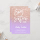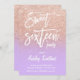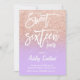 Une douche à parties scintillant en or faux rose moderne et sombre avec bloc couleur lavande violet pastel Sweet 16 script typographie invitation anniversaire avec or rose ombre motif s'estompant sur un arrière - plan pastel violet. Parfait pour un Sweet sixteen princesse, parfait pour elle, la fashionista qui aime motif moderne et glam. N'hésitez pas à me contacter si vous avez besoin d'une personnalisation