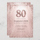 Célébrez en style avec cette invitation glamour de 80e anniversaire, parfait pour une fête d'anniversaire d'étape. Doté d'un arrière - plan en or rose métallique avec un effet de projecteur sur le numéro étincelant 80, cet invitation brille de parties scintillant et de confettis métalliques qui créent un cadre élégant et festif. Idéal pour des fêtes d'anniversaire sophistiquées, des invitations d'anniversaire de luxe ou une soirée à thème d'or rose, cette invitation est conçue pour séduire les invités et donner le ton pour une fête étincelante.