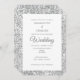 Elégante et élégante invitation en gris argenté et blanc avec un texte mariage de script fantaisiste et un motif de parties scintillant faux. Un design idéal pour ceux qui recherchent quelque chose de simple avec une touche de chic.
