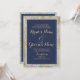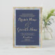 Elégante marine bleu, or et argent parties scintillant holographique invitations mariage sont parfaits pour toute cérémonie classe et sophistiquée. Ce design minimaliste exquis et élégant est idéal pour les filles branchées et chic ou pour n'importe qui. Customisez ce design avec votre propre message et des informations personnalisées. Tous les dessins sont imprimés.