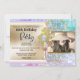 Un magnifique arrière - plan imitation perlé aux tons vifs de rose, violet et bleu aqua forme une toile de fond aux ballons de parties scintillant posés sur le bord d'un arrière - plan à bordure dorée et violette et à un cadre photo qui peut être personnalisé pour votre occasion. Ces fabuleuses invitations sont idéales pour toute fête d'anniversaire de naissance de petite fille ou de diva que vous pouvez accueillir ou célébrer pour votre patron, mère, soeur, fille, nièce, petite-fille ou fillette.