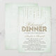 Ce design d'invitation à dîner de répétition design par The Spotted Olive™ présente un arrière - plan doux avec une image de gemmes en streaming descendant du haut et le mot "dîner" rempli d'une image de parties scintillant en or. VEUILLEZ NOTER : CETTE CONCEPTION NE COMPORTE QU'UNE IMAGE IMPRIMÉE DE PARTIES SCINTILLANT ; IL N'Y A PAS DE PARTIES SCINTILLANT PHYSIQUE UTILISÉE OU INCLUSE ; IL N'Y A PAS D'EMBELLISSEMENTS. IL S'AGIT D'UNE INVITATION IMPRIMÉE À PLAT. Copyright 2014-Present | L'Olive tacheté™ | Tous droits réservés