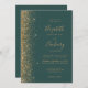 Le bord gauche de cette élégante faire-part de mariage moderne présente un style de parties scintillant en faux or. Le texte personnalisable associe écriture manuscrite dorée, cuivre et polices italiques sur un arrière - plan vert foncé. L'envers offre de l'espace pour les détails mariages sur un arrière - plan vert foncé solide, ainsi qu'un code QR que les clients peuvent scanner pour visiter votre site Web et RSVP, qui économise le coût d'impression et d'envoi de cartes RSVP séparées.